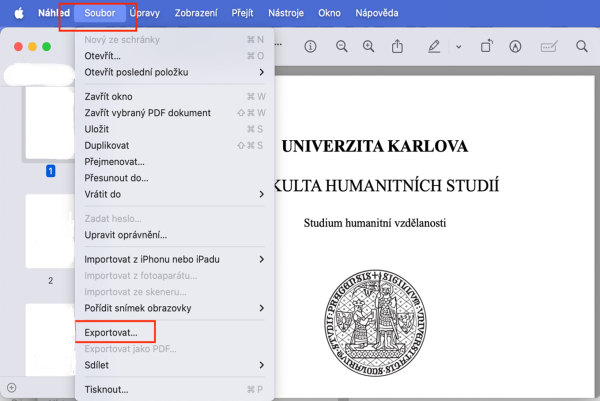 1. Otevřete soubor PDF v aplikaci Náhled (Preview). Soubor PDF vytvořte v aplikaci Word.
